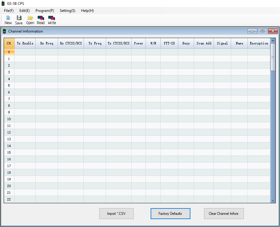 The CPS does support importing channels from a CSV file, but I have not been able to make this function correctly. There is literally zero documentation on what the format of the CSV file should be. There is also no “Export CSV” button to see what the CPS might generate. I took a guess and used the same text as the headings in the CPS. The channels all filled correctly, and the codeplug saved and wrote to the radio, but after the radio rebooted none of the channels were there. When you type a frequency in to the CPS manually, it stores the frequency to the fifth decimal place. When importing the CSV, it entered the raw frequency as in the file. I tried clicking every frequency box which added the appropriate amount of zeros, but the channels still did not exist on the radio after writing the codeplug successfully. With over 100 channels in my standard load-out for most of my radios I gave up. The CPS would be usable if you are willing to handjam 100 channels in to the thing but who has time for that?